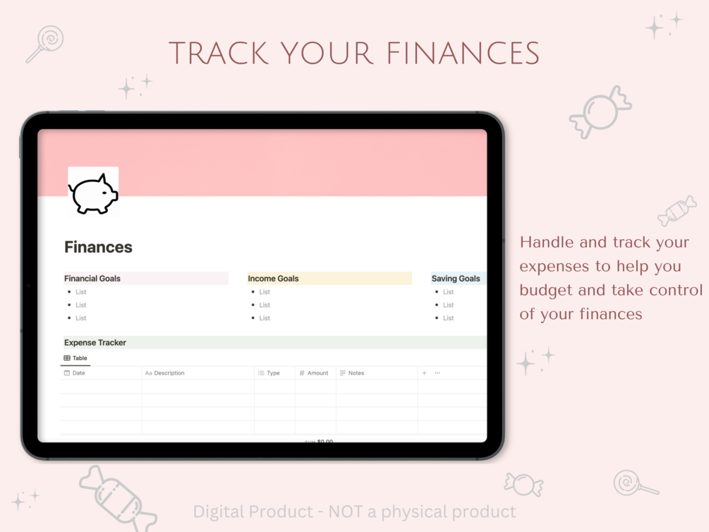 Keep your life organized with this sweet and simple pastel candy themed notion template!